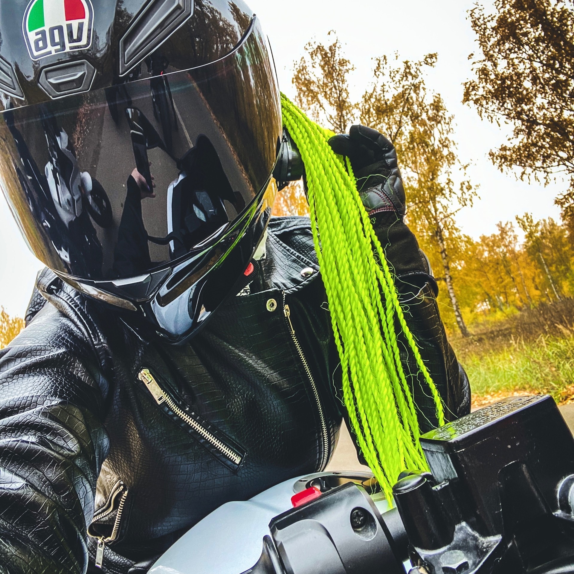 Мотошлем с косичками